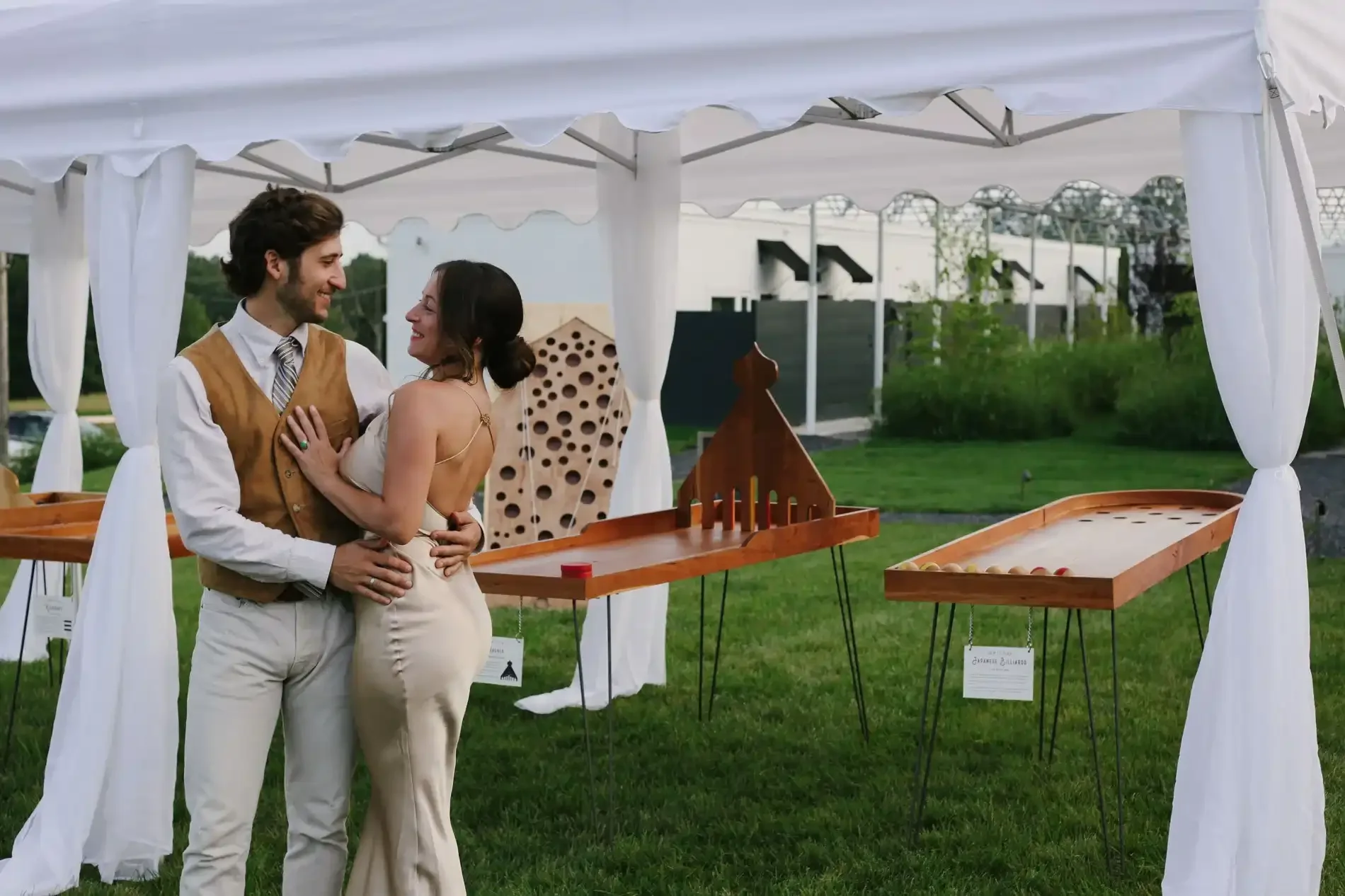 It all started when close friends asked to borrow our cornhole boards for their wedding. We spent a majority of cocktail hour tossing bags with guests who had flown in from all over the world—England, Spain, Canada, Portugal and Mexico. By the time dinner rolled around, we were all besties! We loved how the games brought us all together, and without any awkward small talk.
